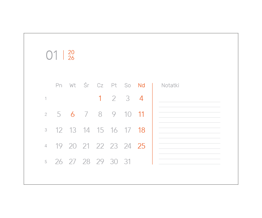 kalednarium TB 02 C - z miejscem na logo oraz zdjęcia w górnej części planszy